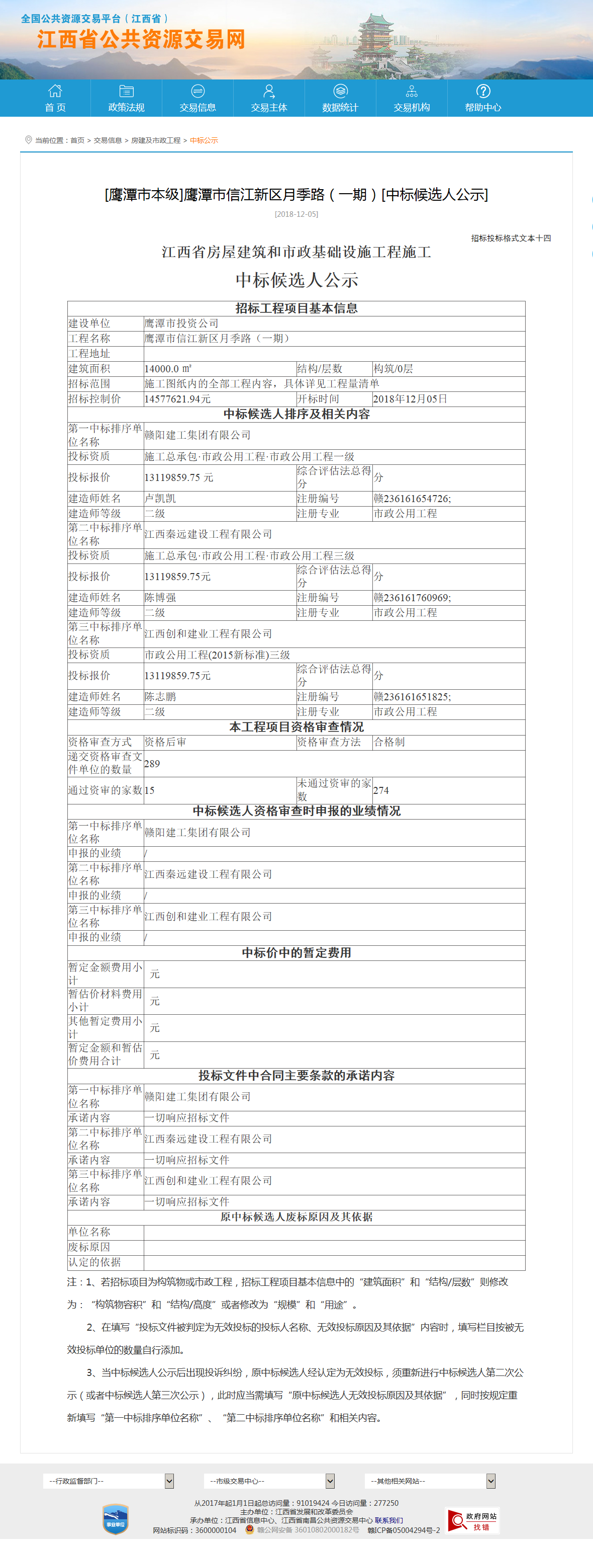热烈祝贺赣阳建工集团中标“鹰潭市信江新区月季路(一期)”